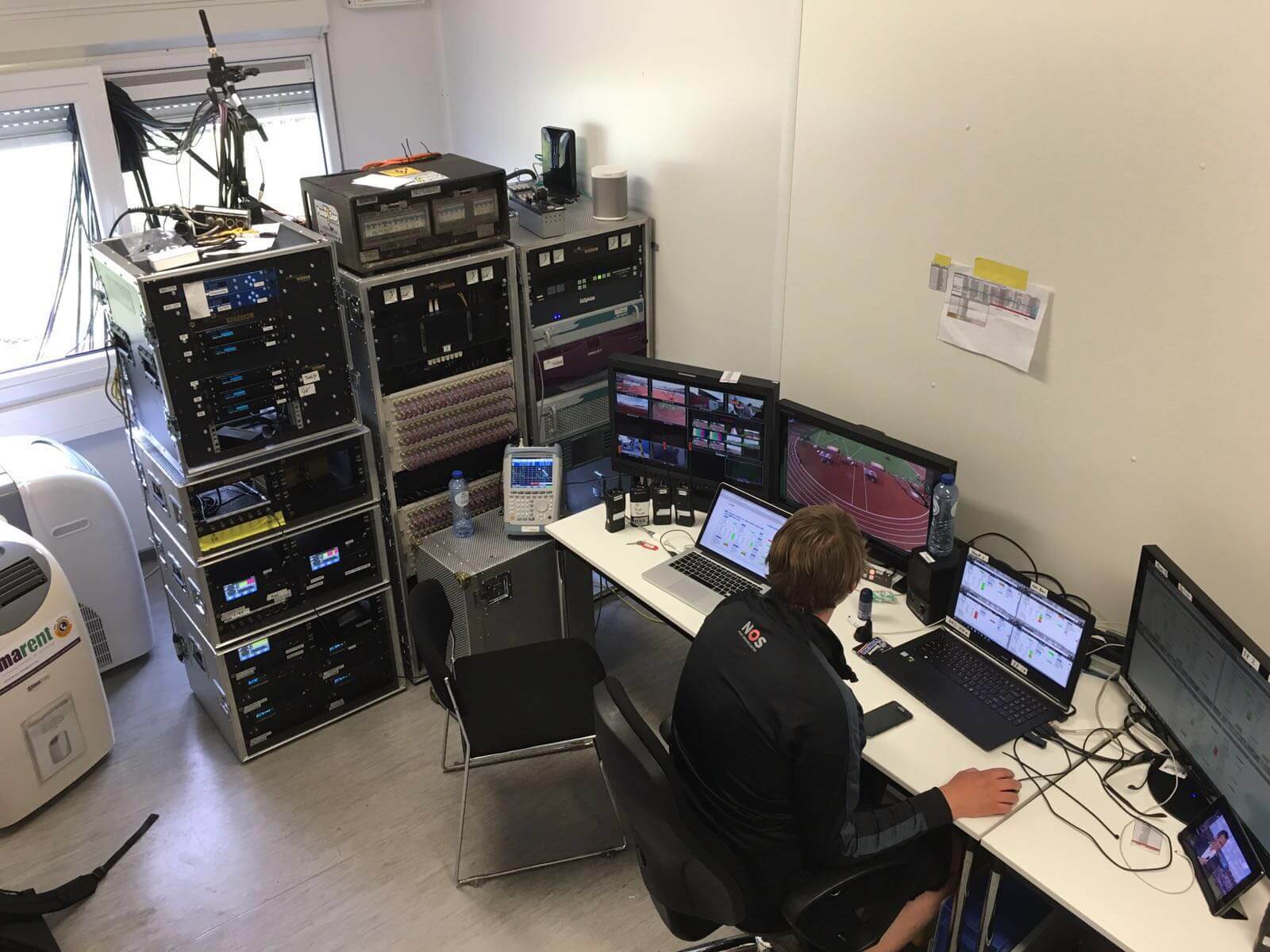 An ambitious project this summer were the European Athletic Championships in Amsterdam. To the question whether it was a job bigger than usual by Dutch standards, Slee replied: ‘Well it was just like any other European Championships, but it is true that a job this size is not common in the Netherlands. It felt great to be part of it. Our clients were United, Eurogrip and Facility House. We supported United with wireless connections and special ultra slomo camera’s for their work for NOS. They also did the overall event presentation, for which we provided the RF camera sets. Our system means that we had to set up the reception infrastructure just once. We hauled in all twelve cameras with three cables from a central point, distributing it from there. For Eurogrip we also did the wireless bit. Speedcam….flycam….all with our connections.’