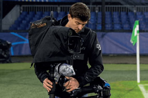 After a period of testing and making minor adjustments, there was finally the set-up as it is now used at UEFA Champions League matches. “Ziggo Sport already knew us from Formula 1 and they know they can really pick up an innovative project with us. Based on what they saw with us now, they were keen to apply this to the Champions League as well,” Steenbeek said. So too tomorrow, at the match between Feyenoord and Bayern Munich, where Broadcast Rental will provide a total package, he further explains. “I always find it an added value anyway if we are not just a supplier, but really have a worry-free function. That way we have all the elements under control ourselves and our customer, Ziggo Sport in this case, doesn't have to think about anything in this area. So tomorrow we will also supply a Steadicam and a wireless view monitor for the interviewer on the field. Then I literally supply the whole package: a cameraman, a focus puller, a camera and a lens. And so those two people bring a rig for the Steadicam. And in addition, then Ben de Graaf comes with his rig and his focus puller. Moreover, we make sure that all the connections are there and that the wireless sets work perfectly. All the technology is with us, they don't have to think about anything.”